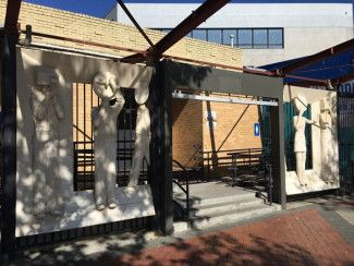 The public art work was part of Council’s façade improvement project aimed at enhancing the built environment. Directly inspired by the amenities block at which the work is located, the artwork is a site specific response to the nature of the amenity through the humorous depiction of figures whose heads have materialised into bathroom objects.